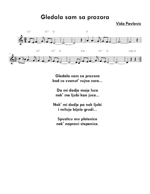 GLEDALA SAM SA PROZORA NOTE AKORDI TEKST